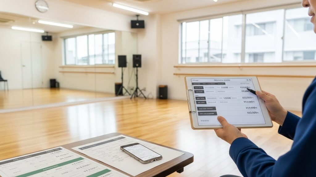 1時間料金より「1人あたり・1帖あたり」でコスパを計算すること ダンス・演劇・セミナーなど、自分の用途に合った設備が揃っているかを確認すること 平日昼か土日祝・夜間かによって料金が変わるため、自分のスケジュールと料金テーブルの相性を見ること 広さと料金のバランスをどう見る?