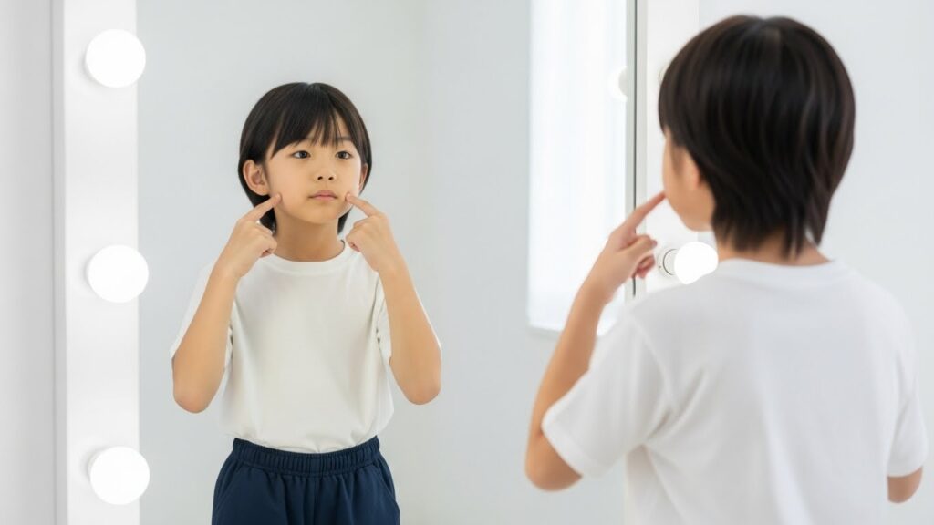 3. 表情トレーニング(3分) 鏡の前で笑顔・驚き・悲しみなどの表情を変えてみると、表現の幅が広がります。自分の表情を客観的に確認することで、カメラの前でも自然な表現ができるようになります。