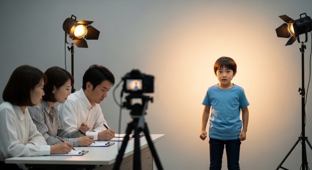 Q5. 子役オーディションの一般的な流れは? A. 多くは「応募→書類審査→実技審査→最終面接→合格」で、各段階で写真・プロフィール・演技・人柄が見られます。