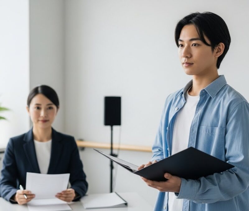 写真は、顔がはっきり写ったバストアップと全身の2枚が基本で、過度な加工やプリクラのような写真は避けるべきです。 自己PRは長文よりも、「名前・年齢・得意なこと・芸能活動で実現したいこと」を簡潔にまとめ、1分以内で話せるように準備するのが効果的です。 礼儀面では、入室・退室時の挨拶、面接官の目を見る姿勢、時間厳守が最低ラインであり、現役生も「ここで印象が決まる」と実感しています。初心者がまず押さえるべき点は、「オーディションは試験というよりも、初対面の人とのコミュニケーションの場」と捉える意識です。